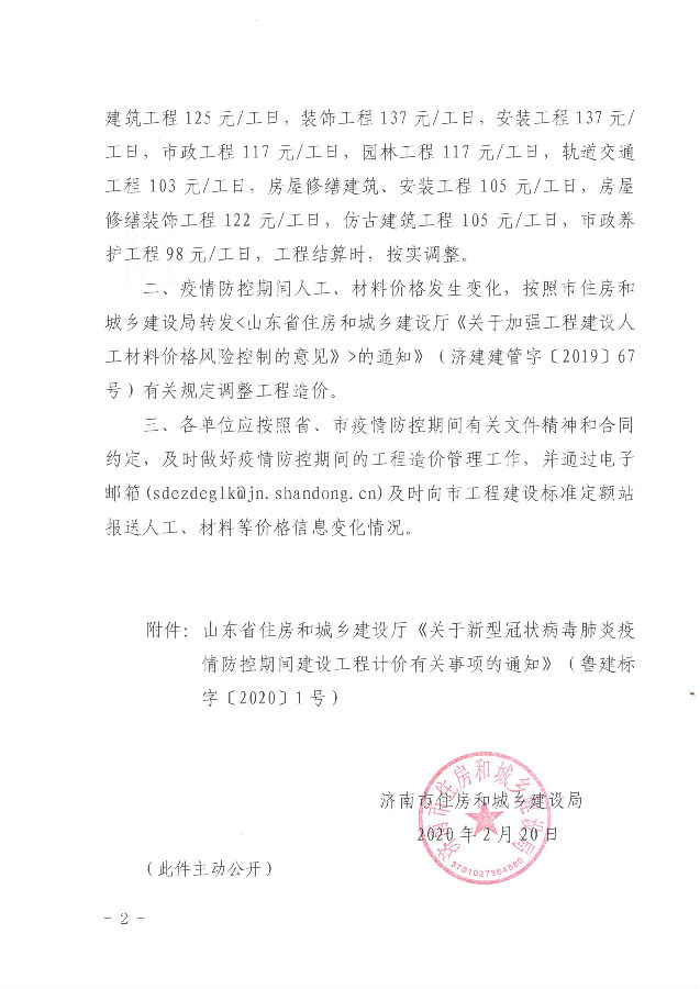 濟南市住房與城鄉建設局關于轉發《省住建廳<關于新型冠狀病毒肺炎疫情防控期間建設工程計價有關事項的通知>》的通知